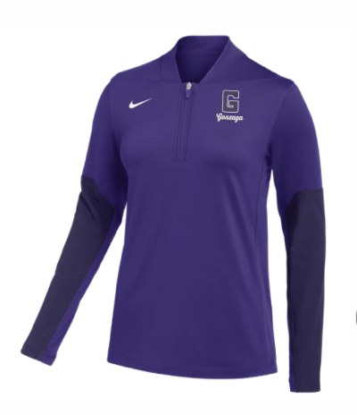 Updated neckline with rib. Cuff inset for zero distractions. Stretch woven overlay with mitered corner. Purple Sizes S-XL