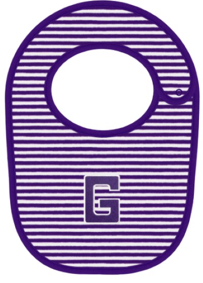 Our newest collection for Gonzaga babies starts with this darling striped bib with embroidered big G. Purple and White...of course!